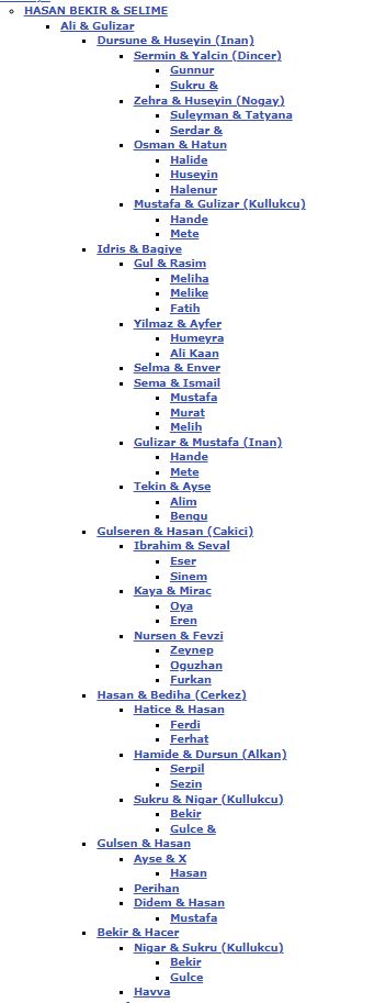 Bu ailenin bilgileri degerli arkadaslarim Nigar Kullukcu ve Gultekin Kullukcu ile birlikte derlenmistir. Tesekkurler.